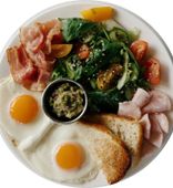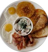Меню кофейни включает широкий выбор завтраков, закусок, напитков и десертов. Порции сытные, оформление блюд — аккуратное и аппетитное. Среди популярных позиций: завтрак, цезарь, американский завтрак, завтрак Detox оладьи из цукини с лососем и домашним песто. Также в заведении можно заказать торты и десерты по предварительному заказу.