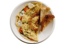 250 г • омлет из трех яиц, бриошь, сыр моцарелла, сыр чеддер, зелёный салат, томаты черри, пряное масло