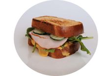 200 г • бублик bagel, соус Цезарь, сыр чеддер, салат зеленый, огурец свежий, ветчина