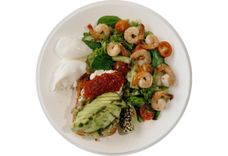 400 г • пашот (2 шт.), авокадо, зелёный салат с томатами черри, креветками, огурцом и оливковым соусом, бриошь, крем чиз, гуакамоле, икра красная
