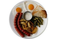 300 г • яичница из двух яиц, колбаски баварские, бриошь, соус Цезарь, картофель по-деревенски, корнишоны маринованные